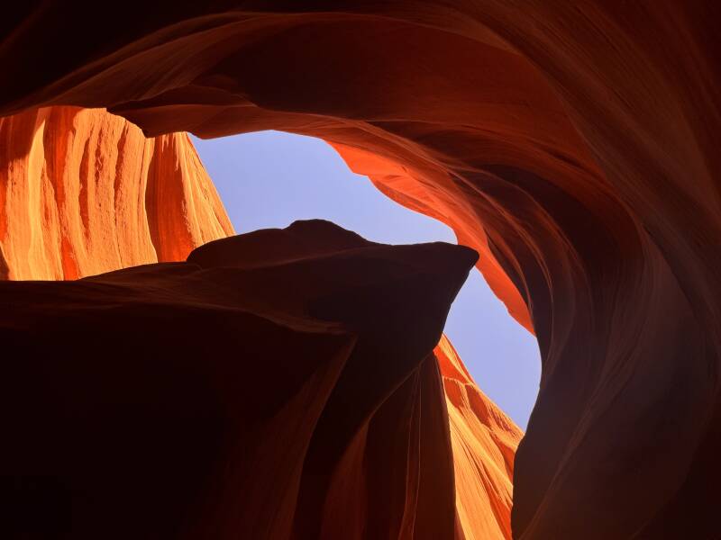 - L’Antelope Canyon X prende il nome dalle due fenditure a forma di “X” create dall’erosione dell’acqua e del vento sulle pareti di arenaria ed è il meno conosciuto dei tre canyon a Page in Arizona.